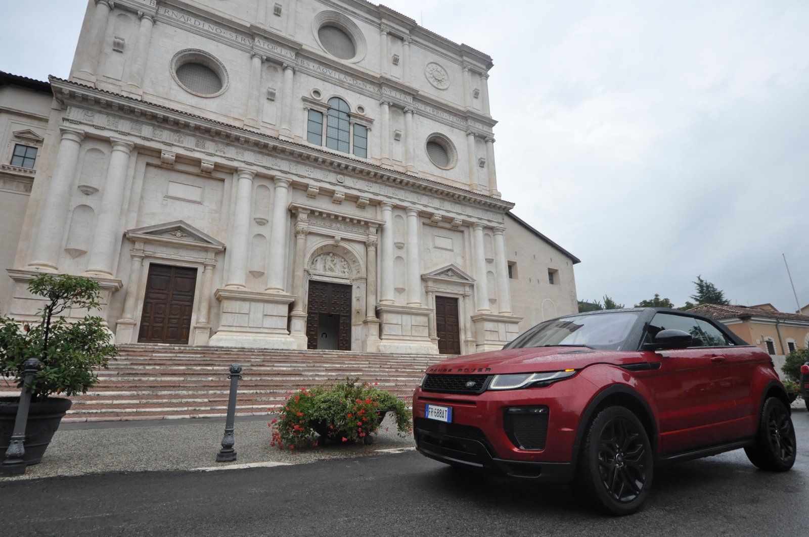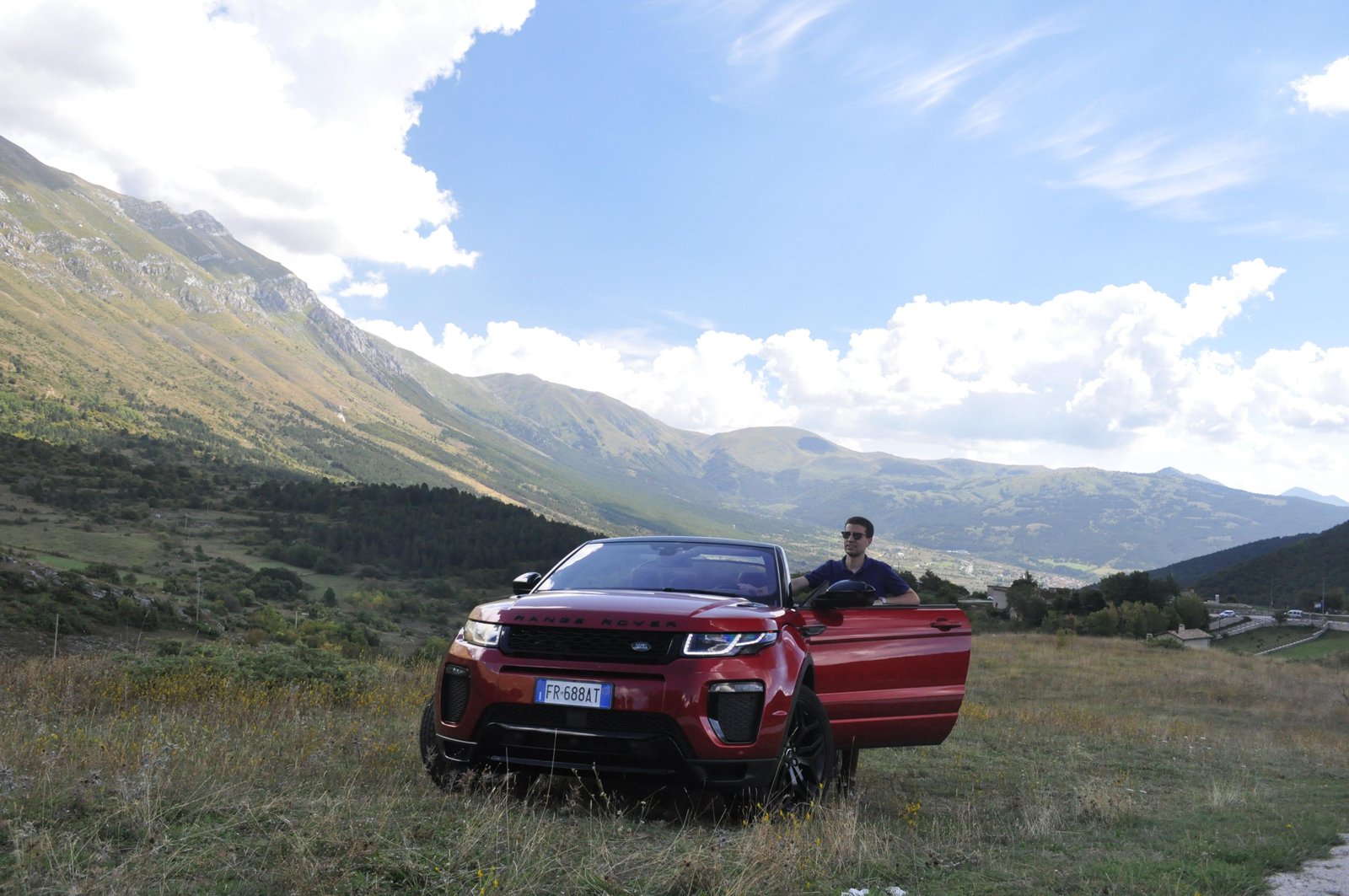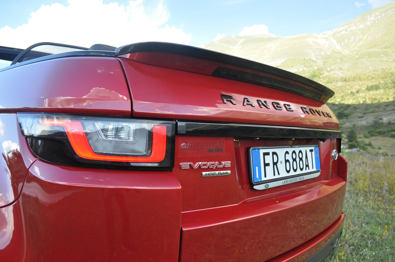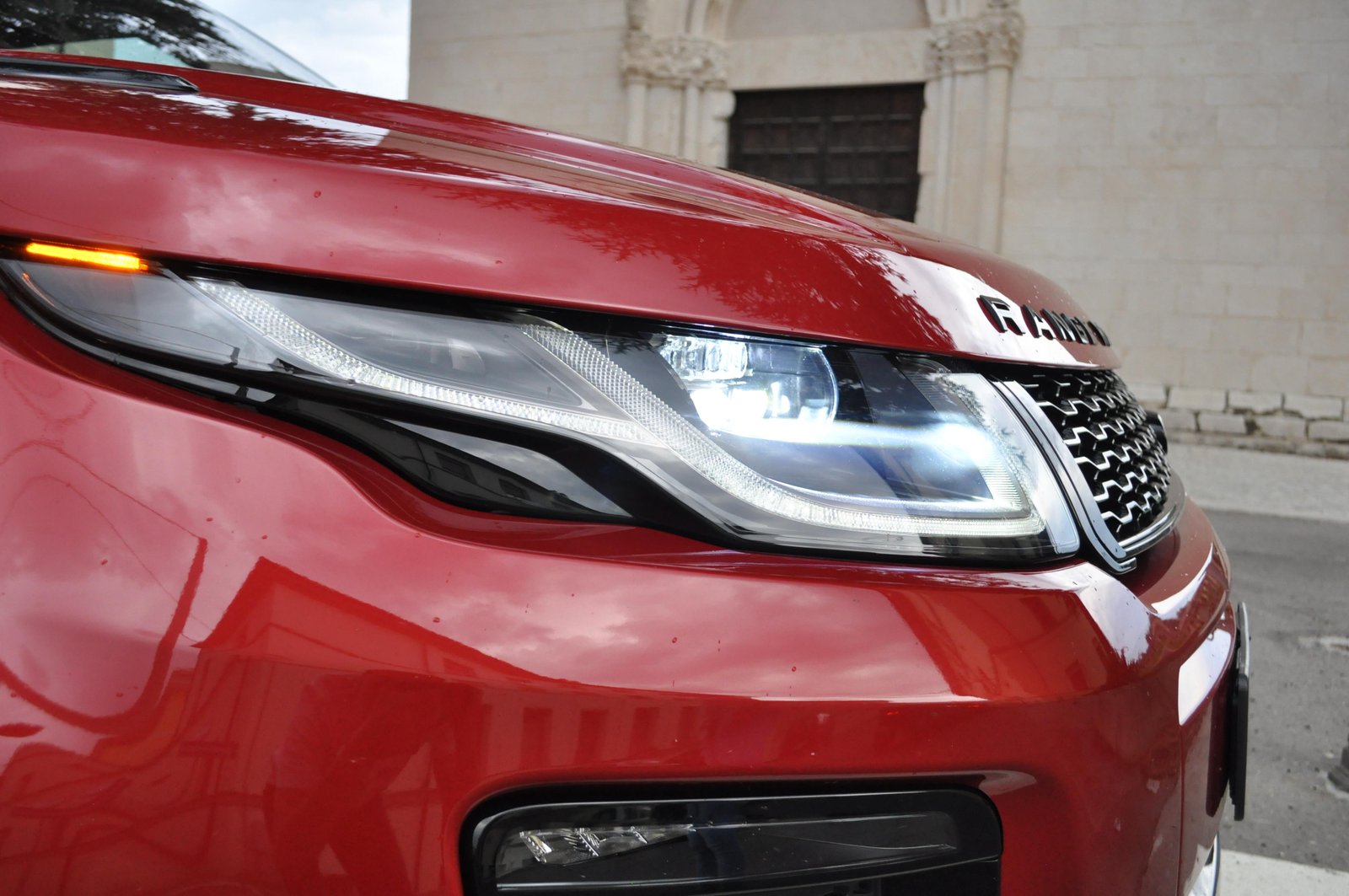 Il motore di questa prova è il 2.0 diesel da 240 CV abbinato al cambio automatico ZF a 9 rapporti. Su strada Evoque cabrio è divertente da guidare grazie ai suoi 500 Nm di coppia ed alla velocità massima di 217Km/h. Il cambio automatico ne valorizza lo scatto e, grazie alle palette dietro al volante, si riesce a tenere entrambe le mani sullo sterzo. Come per tutti SUV il baricentro della vettura è alto ma, anche in curva, l’auto non tende troppo a coricarsi. La vettura risente di un leggero rollio ma, l’ottimo lavoro svolto sulla solidità del pianale, evita comportamenti scomposti. Insomma il driver ha sempre la situazione sotto controllo. Ad andature meno sostenute Evoque si rivela docile e piacevole da guidare. La capote multistrato garantisce un’ottima insonorizzazione della vettura e, di conseguenza, le differenze rispetto alla versione coupé sono difficili da cogliere. Se scegliamo di montare il frangivento posteriore a tetto scoperto dovremo rinunciare alla seconda fila di sedili. In generale ottima guidabilità in città ed anche fuori; ma occhio ai consumi. Con il 2.0 diesel da 240CV è difficile fare meglio di 8,7 litri ogni 100km. Ad incidere è sicuramente il peso della vettura e le dimensioni generose dei cerchi opzionali da 20″ Satin Black.