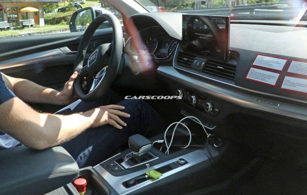 L’interno della nuova Q5 è dotato di un touchscreen più grande, che misura 10,1 pollici, sporgente e separato dal cruscotto. Anche i controlli HVAC sono stati modificati, così come la console centrale. Il prototipo in questione mostra un tachimetro analogico, ma sarà anche disponibile la Virtual Cockpit da 12,3 pollici di Audi.