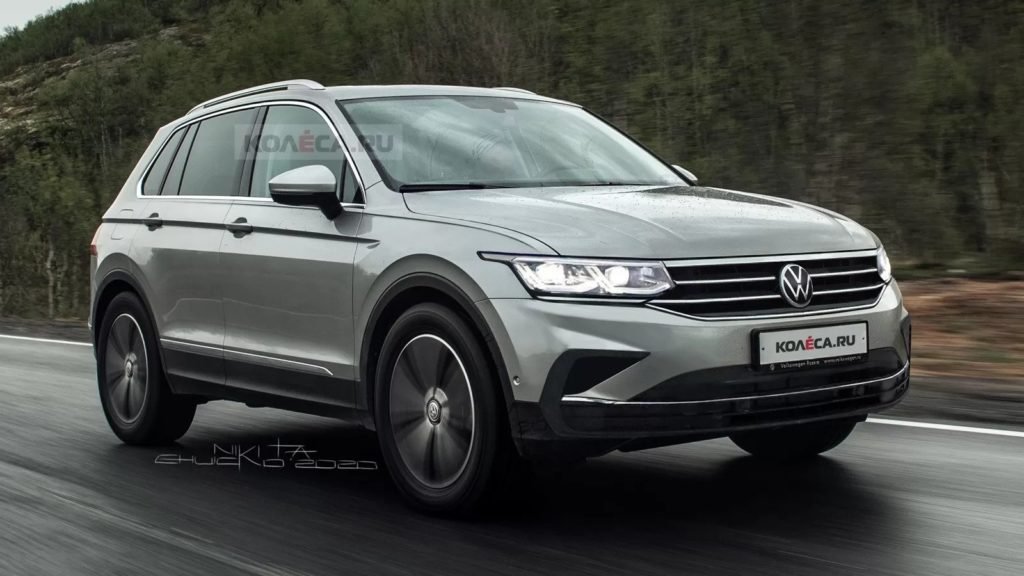 Gli amici di Kolesa.ru hanno deciso creare un rendering che ci mostra in anteprima il design della nuova VW Tiguan 2020. La parte anteriore sarà notevolmente aggiornata: la griglia del radiatore diventerà un più grande in altezza e sarà visivamente unita con i fari, come su altri nuovi crossover Volkswagen. I fari anteriori hanno una nuova forma, che ricorda la Golf 8, vista la coppia di elementi LED a forma di L in ciascun proiettore. La presa d’aria inferiore nel paraurti diventerà leggermente più ampia e al centro correrà una modanatura cromata.