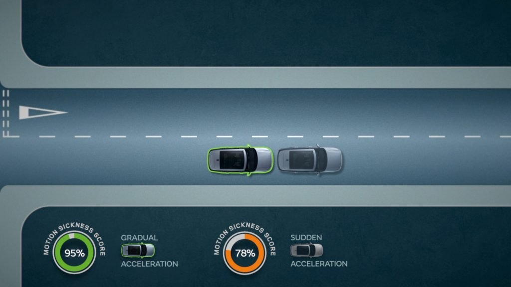 Durante la prima fase del progetto, è stato elaborato un “punteggio benessere” che potrebbe ridurre l’impatto delle cinetosi fino al 60%. Gli ingegneri informatici dell’impianto Jaguar Land Rover di Shannon, hanno ora implementato questa percentuale all’interno del software per la guida autonoma.
