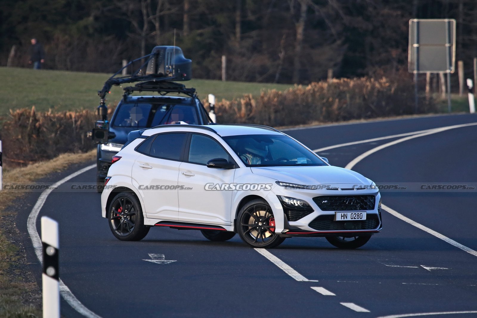 I fotografi di Carscoops.com affermano che la Kona N era inizialmente avvolta in una pellicola nera, che è stata tolta solo per le riprese del video ufficiale.