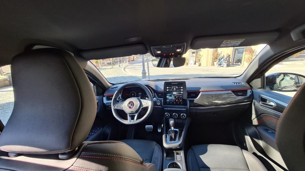 La Renault Arkana presenta un abitacolo decisamente curato e tecnologico. La plancia è dominata dallo schermo del sistema di infotainment da 9,3 pollici disposto verticalmente e si nota l’ampio tachimetro digitale da 10,25 pollici. L’allestimento RS Line si contraddistingue per il volante sportivo con cuciture a vista, trama in simil-carbonio su pannelli porta e plancia e sedili con rivestimento in pelle ed Alcantara.
