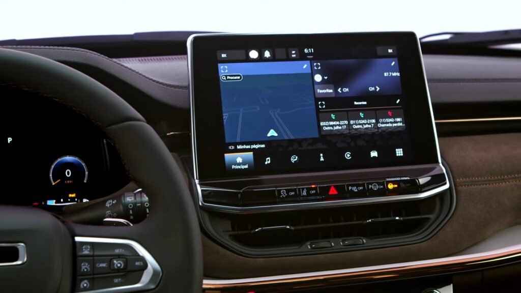All’interno Jeep Commander presenta un quadro strumenti digitale da 10.25 pollici e lo schermo touch da 10.1 pollici per il sistema di infotainment centrale. Previste finiture specifiche come il camoscio marrone con cuciture e dettagli color bronzo.