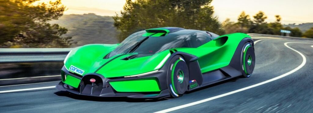 Questo rendering esclusivo immagina la prima Bugatti completamente elettrica come una versione più elegante della Bolide – una supercar solo da pista che utilizza il motore W16.