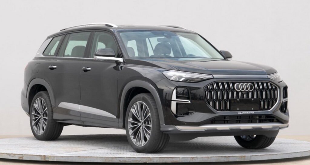 Audi non rilascerà dettagli ufficiali fino al Beijing Auto Show di aprile, ma i dati registrati con il Ministero dell’Industria e dell’Information Technology (MIIT) della Cina rivelano che il SUV a tre file misura 5.099 mm di lunghezza, 2.104 mm di larghezza e 1.784 mm di altezza. Il passo di 2.980 mm è identico a quello della Volkswagen Atlas, di cui condivide la piattaforma MQB.