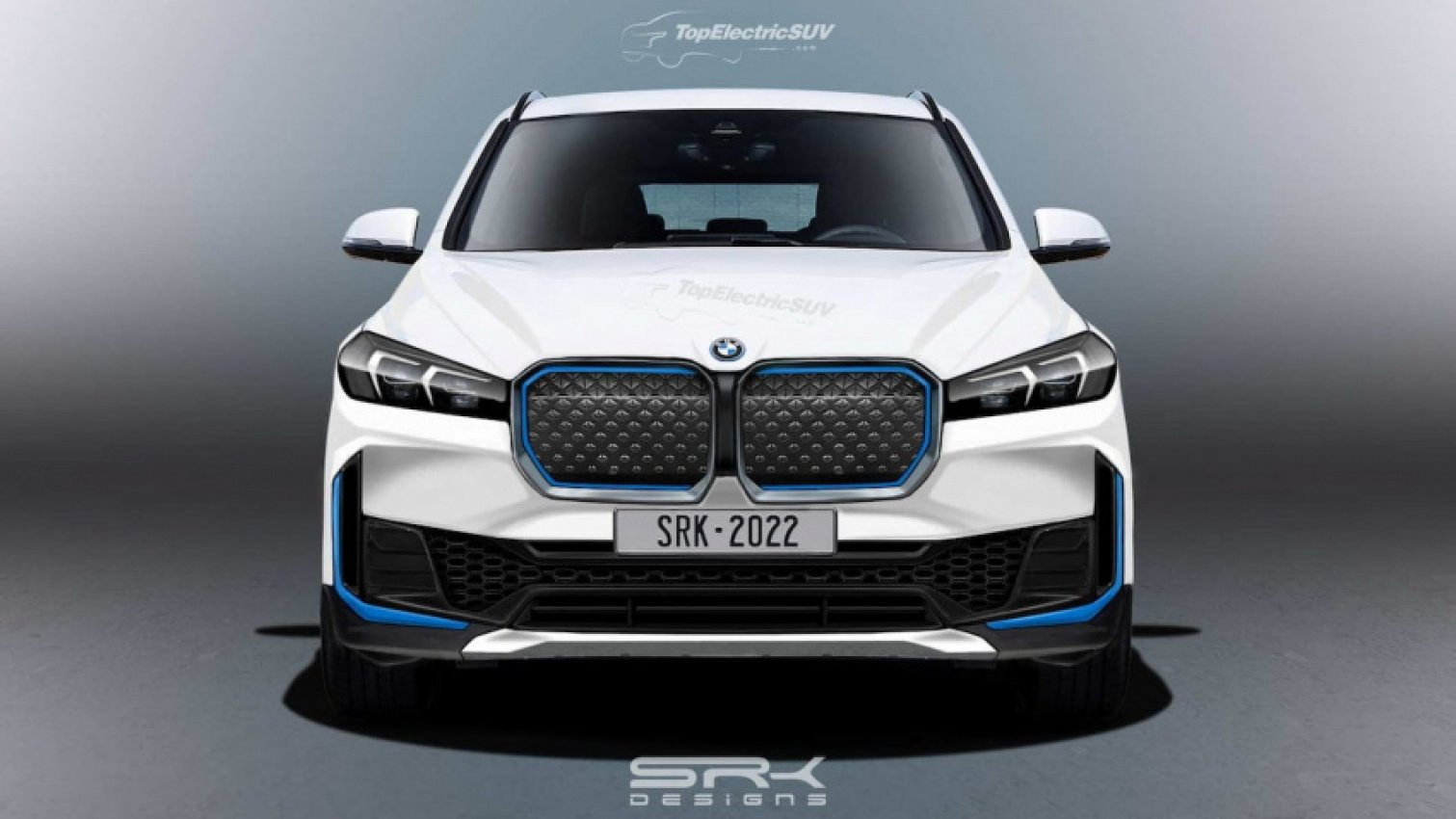 L’immagine di Photoshop evidenzia un nuovo design dei fari con una grafica interna unica, collegati alla griglia anteriore più grande con un design lineare. Ci sono anche grandi prese d’aria laterali a forma di C che si trovano proprio sotto i fari. Si notano numerosi accenti blu che ricordano che questa è una BMW completamente elettrica.