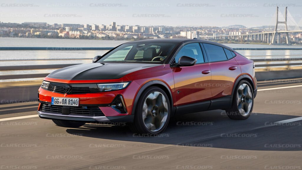 Il rendering della Opel Manta e di Carscoops.com incorpora l’ultimo linguaggio di design di Opel in un elegante crossover con una linea del tetto in stile coupé. Caratteristiche come la griglia Vizor in nero che ospita i fari, la linea centrale prominente sul cofano e la grafica a LED, sono stati introdotti dalla Mokka prima di espandersi gradualmente in tutta la gamma Opel.