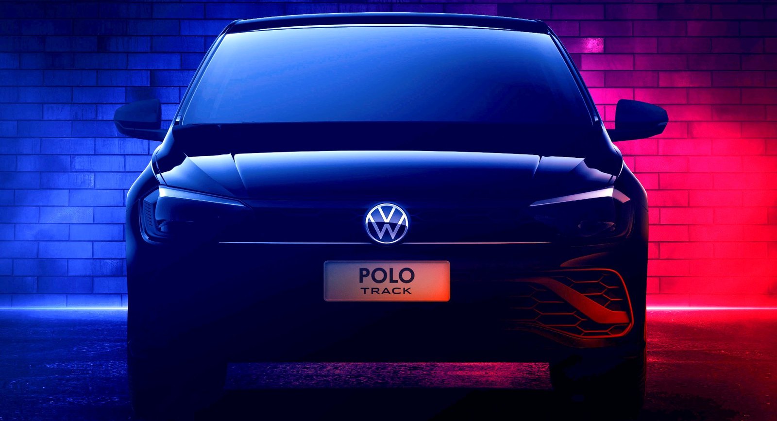 Mentre il nome Track farebbe pensare a un crossover, la VW Polo Track è una normale hatchback. L’oscuro teaser rivela che condivide la maggior parte dei pannelli della carrozzeria con la Polo normale, che viene venduta anche in Brasile. Il modello propone alcune modifiche al design, tra cui una grafica dei fari più semplice, una griglia più spessa e un paraurti ridisegnato con un motivo a nido d’ape sulle prese sportive.