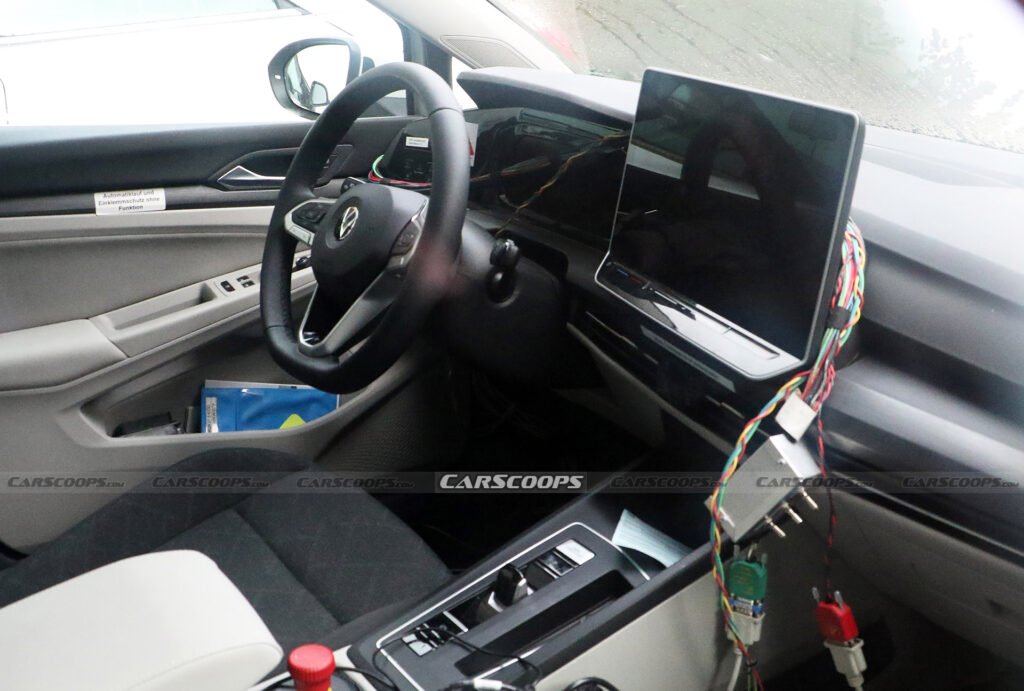 L’attuale Volkswagen Golf ha un display da 10 pollici, ma l’unità nelle foto sembra più vicina al touchscreen da 15 pollici presente nella Touareg. Purtroppo, la controversa barra sensibile al tocco sembra essere stata mantenuta, senza controlli fisici visibili per il climatizzatore. Il tunnel centrale sembra essere identico, compreso l’interruttore simile a quello della Porsche 911 per il cambio DSG e la porta di ricarica wireless. Lo stesso vale per il volante a tre razze e le bocchette del clima, anche se il quadro strumenti digitale potrebbe ricevere una nuova grafica.