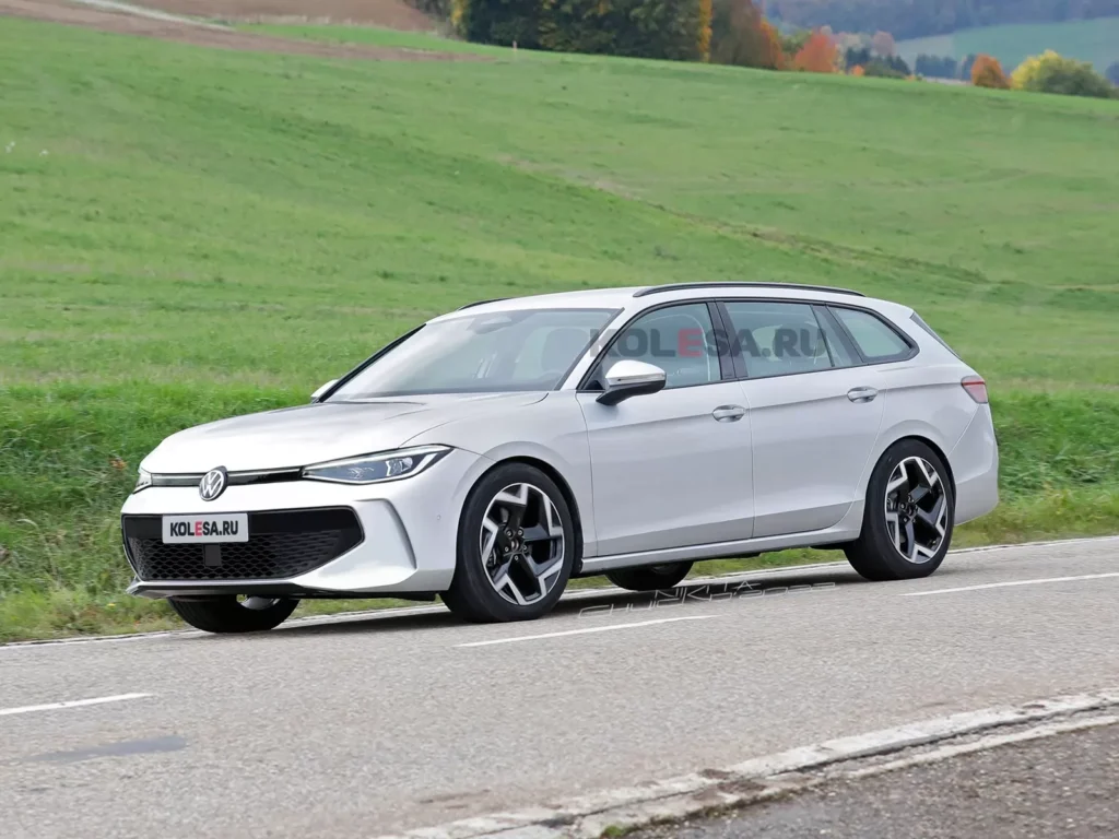 La nuova Volkswagen Passat sarà disponibile solo come station wagon. La nuova Passat avrà uno stile più morbido rispetto agli altri nuovi modelli, a differenza della “rigidità” del modello attuale. Nella parte anteriore, ci saranno fari stretti e orizzontali, uniti visivamente da un inserto nero con il logo al centro. Il paraurti avrà un’ampia presa d’aria nella parte inferiore e prese d’aria verticali (o loro imitazioni) ai bordi. Lungo le maniglie delle porte saranno presenti profonde feritoie. Tra l’altro, le fiancate della nuova Volkswagen Passat sono quasi identiche a quelle della futura Skoda Superb, di cui abbiamo pubblicato i rendering il mese scorso. Lo stesso vale per gli specchietti laterali montati sulle gambe e per il profilo della parte posteriore con le luci unite da una stretta striscia a LED. Le caratteristiche distintive della Passat saranno il design del paraurti posteriore e, molto probabilmente, la grafica delle luci di marcia a LED.