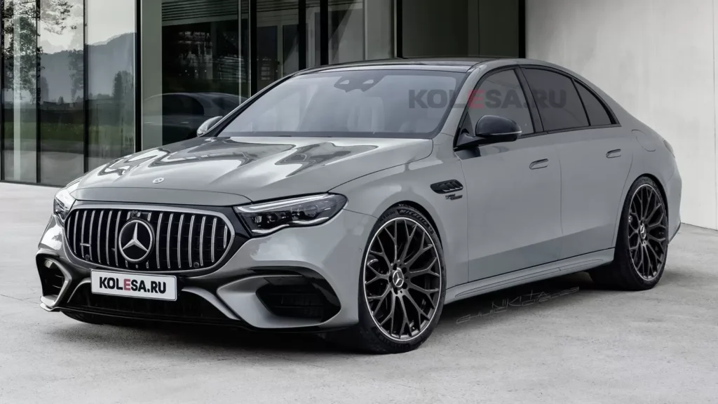 Nella parte anteriore ci sarà una griglia con barre verticali e un nuovo paraurti con prese d’aria più grandi. Una caratteristica distintiva della precedente generazione della Mercedes E 63 AMG sono i passaruota anteriori allargati. I parafanghi anteriori saranno probabilmente caratterizzati da inserti decorativi e, nella parte posteriore, da un nuovo paraurti con tubi di scarico angolati integrati e da uno spoiler sul cofano del bagagliaio.