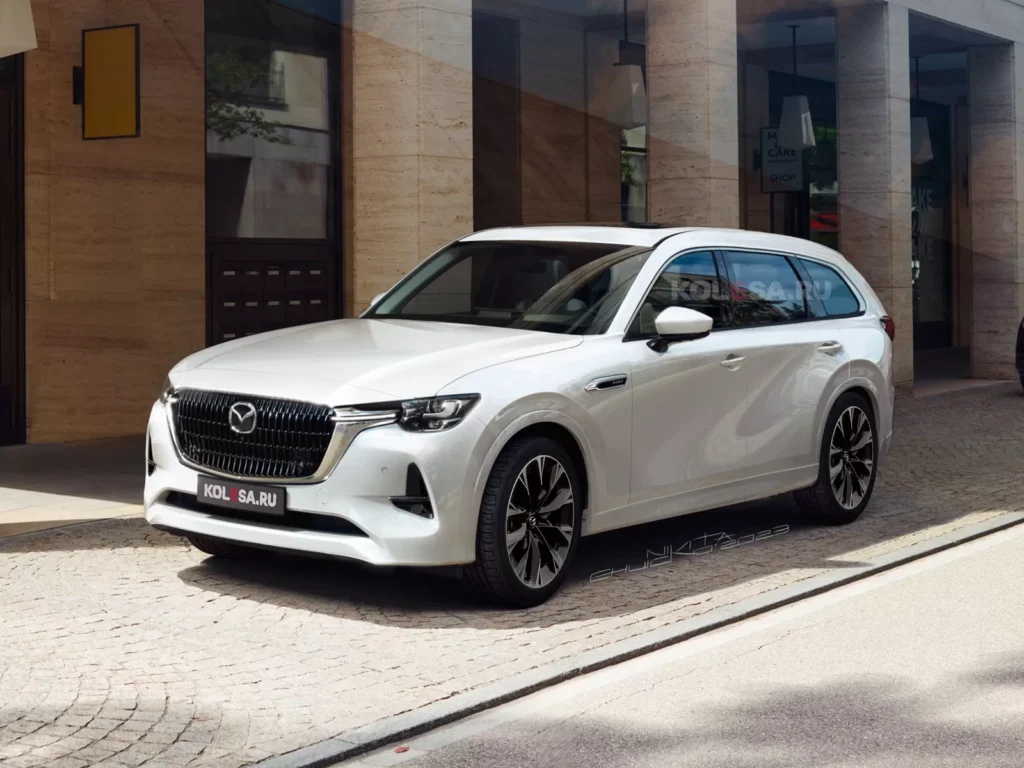 I rendering di Kolesa.ru sono basati su foto spia, quindi tutte le dimensioni e le proporzioni corrispondono alla vettura reale. Il Mazda CX-80 sarà in realtà una versione a tre file del modello CX-60. Da esso la novità prenderà in prestito le caratteristiche del modello. Da esso la novità prenderà in prestito la parte anteriore con una grande griglia e fari di dimensioni ridotte, anche il paraurti potrebbe non subire modifiche.