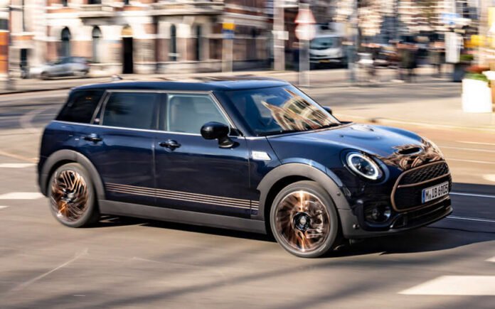 I dettagli esterni della Mini Clubman 2024 includono finiture in nero lucido sui bordi dei fari e delle luci posteriori, sulle maniglie delle porte e sui terminali di scarico. Questa finitura è utilizzata anche per il nome del modello sulle iconiche porte a battente che recano anche il badge “Final Edition”, mentre i tocchi finali sono gli accenti Shimmer Cooper sulla griglia, sulle fiancate e sul posteriore, oltre ai cerchi in lega bicolore Final Edition Spoke da 18 pollici.