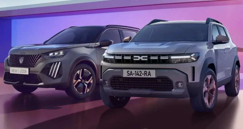 Il Dacia Duster ha ora un aspetto più moderno, con il suo look massiccio, la firma luminosa a Y e le protezioni della carrozzeria in plastica riciclata “Starkle”. Inoltre, beneficia di maniglie delle portiere posteriori nascoste nei montanti e di barre sul tetto regolabili come quelle del Jogger e della Sandero Stepway. La Peugeot 2008, invece, è ancora più aggressiva dopo il restyling, con una griglia e fari più espressivi, nuovi cerchi e fascioni rivisti con luci diurne a tre artigli.