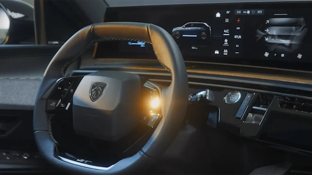 Uno schermo panoramico HD curvo e fluttuante da 21 pollici che combina l’Head-Up Display con il touchscreen centrale del sistema multimediale è il “centro nevralgico” dell’abitacolo. Peugeot sottolinea anche il nuovo sistema di illuminazione ambientale con tecnologia LED.