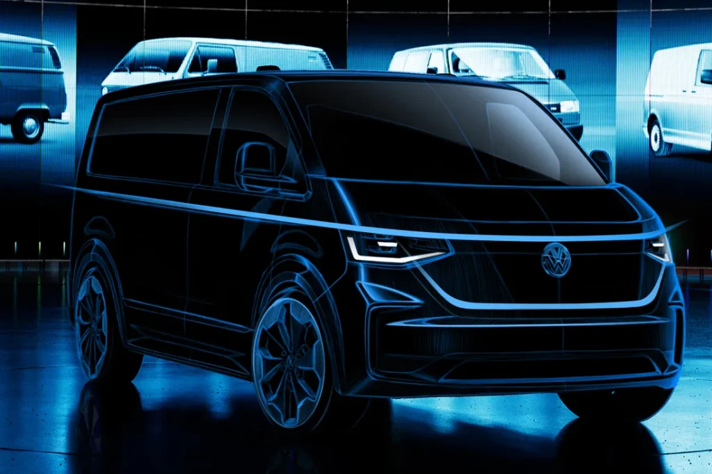 Volkswagen ha presentato ancora una volta un nuovo teaser che non mostra alcun camuffamento ma nemmeno lo spot pubblicitario come avrebbe dovuto fare ormai. Si tratta più che altro di uno schizzo che ne rivela le linee principali, mostrando i suoi fari affilati, molto simili a quelli del Transporter attualmente in vendita, ma più raffinati e con una nuova firma delle luci diurne. Anche la forma della griglia del radiatore è chiaramente visibile, più grande e ora appoggiata sul paraurti.