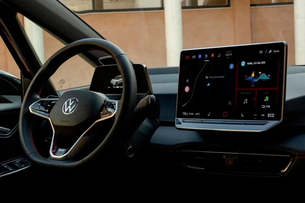Gli interni della nuova Volkswagen ID.3 GTX combinano due colori molto sportivi, il rosso e il nero.