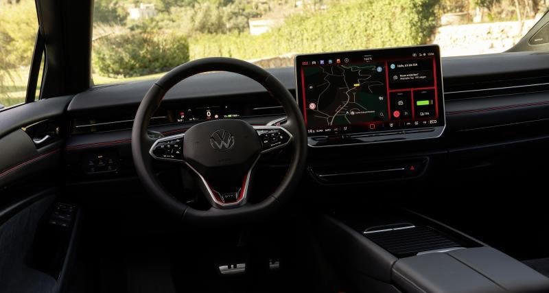 Anche gli interni sono stati ridisegnati, con cuciture rosse a contrasto sul tessuto “ArtVelours Eco” e rivestimenti in microfibra nera, un volante con inserto rosso e badge GTX e monogrammi sullo schienale dei sedili anteriori. D’altra parte, rimane fedele alla ID.7 tradizionale, con la plancia che incorpora un enorme touchscreen centrale da 15 pollici e i contatori digitali ridotti a un piccolo pannello dietro il volante. La dotazione di serie comprende un head-up display con realtà aumentata (con visualizzazione della navigazione tramite CarPlay o Android Auto se è collegato uno smartphone). Tra gli altri equipaggiamenti figurano l’illuminazione ambientale a 30 colori, il climatizzatore bi-zona (3 zone come optional), vari ausili alla guida e l’accesso e l’avviamento senza chiave.