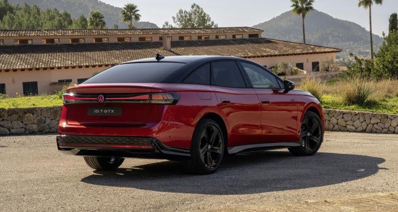 Come il resto della gamma GTX, la berlina elettrica ha ricevuto un look speciale. Un nuovo paraurti che incorpora una presa d’aria inferiore a forma di nido d’ape, una nuova firma luminosa in inserti a forma di freccia nella parte inferiore del paraurti, soglie della carrozzeria, badge, specchietti retrovisori e tetto in nero lucido, un diffusore con un motivo a nido d’ape, cerchi speciali da 20 o 21 pollici, fari a LED a matrice e loghi illuminati all’anteriore e al posteriore… La ID.7 GTX può anche essere dotata di un tetto panoramico opzionale “Smart Glass” con tecnologia opacizzante. Come la station wagon, anche la ID.7 berlina è stata dotata di uno speciale colore King Red metallizzato, che ricorda quello della Golf GTI.
