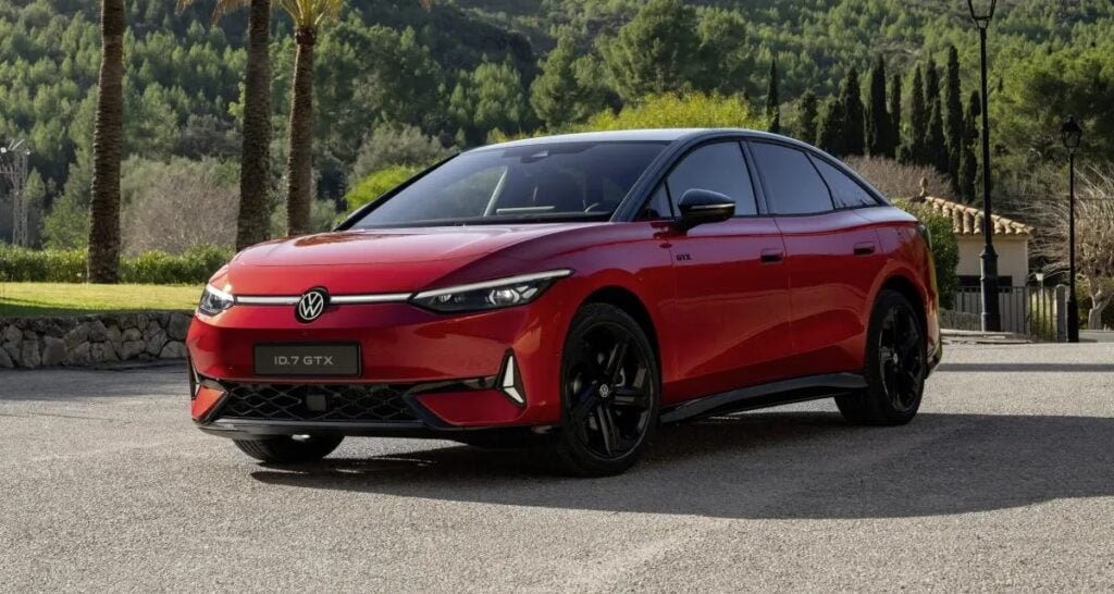 Anche gli interni sono stati ridisegnati, con cuciture rosse a contrasto sul tessuto “ArtVelours Eco” e rivestimenti in microfibra nera, un volante con inserto rosso e badge GTX e monogrammi sullo schienale dei sedili anteriori. D’altra parte, rimane fedele alla ID.7 tradizionale, con la plancia che incorpora un enorme touchscreen centrale da 15 pollici e i contatori digitali ridotti a un piccolo pannello dietro il volante. La dotazione di serie comprende un head-up display con realtà aumentata (con visualizzazione della navigazione tramite CarPlay o Android Auto se è collegato uno smartphone). Tra gli altri equipaggiamenti figurano l’illuminazione ambientale a 30 colori, il climatizzatore bi-zona (3 zone come optional), vari ausili alla guida e l’accesso e l’avviamento senza chiave.