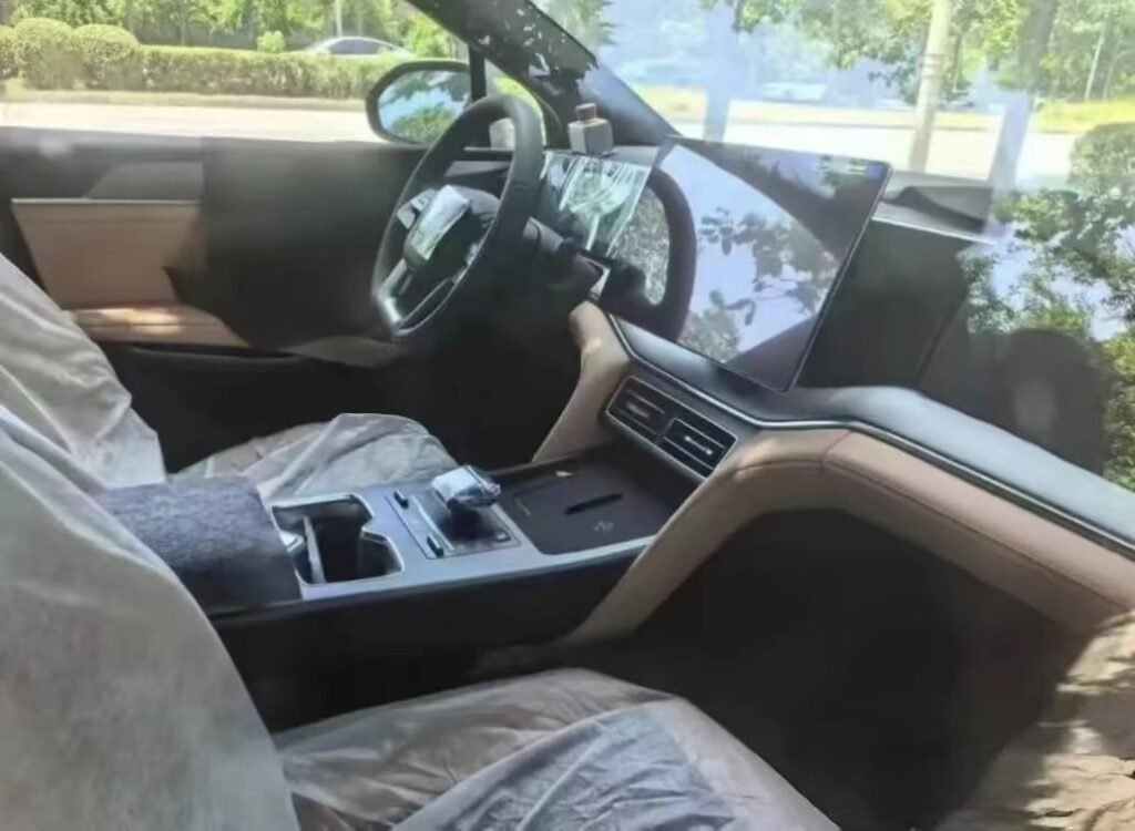 Le nuove foto spia degli interni del BYD Song L DM-i sono simili a quelle che abbiamo riportato in precedenza. Presenta analogie con la Qin L DM-i. La vettura è dotata di un quadro strumenti completamente digitale e di uno schermo di controllo centrale di tipo fluttuante, che sembra avere una dimensione di 15,6 pollici. L’auto ha un volante a quattro razze, un elemento di design tipico della famiglia Dynasty. Tra le caratteristiche aggiuntive figurano un pannello di ricarica wireless per smartphone con una potenza di ricarica massima di 15 watt e sedili sportivi integrati rivestiti in pelle chiara, che aggiungono un tocco di lusso agli interni.