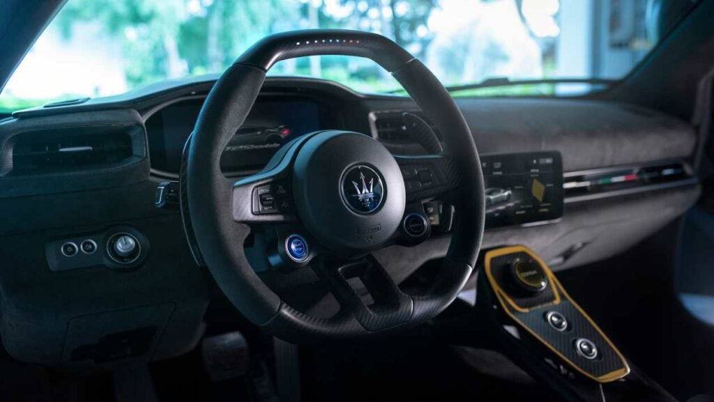 Anche gli interni sono stati rivisti: per ridurre il peso e migliorare l’ergonomia, è stata ridisegnata la console centrale con un disco per la selezione delle modalità di guida, le maniglie delle porte sono realizzate sotto forma di cinghie di tessuto, sono stati installati nuovi sedili Sabelt leggeri, la maggior parte delle superfici sono rivestite in alcantara antiriflesso. Il volante è diventato più piatto, nella parte superiore della corona c’è una ghirlanda di LED, come nelle auto da corsa, che permette di controllare meglio i giri del motore. Il bagagliaio è rimasto uno solo, quello anteriore, con un volume di 100 litri. Nel frattempo, il livello di equipaggiamento è ancora piuttosto elevato: c’è un sistema audio Sonus Faber da 695 watt con una dozzina di altoparlanti, ricarica wireless per smartphone e altre comodità.