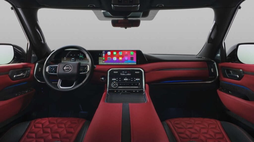 Il sistema operativo è il nuovo Nissan Connect 2.0, con servizi Google come Google Maps, l’Assistente Google e il Play Store integrati, una novità assoluta per la regione mediorientale. Nella parte posteriore si trovano due display da 12,8 pollici montati sui poggiatesta, disponibili come optional.