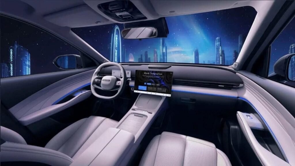 Gli interni sono stati rivelati da una fuga di notizie e, come previsto, si tratta di un abitacolo dal design minimalista, moderno e sofisticato, con un grande display digitale da 12,3 pollici per la strumentazione dietro il volante e uno schermo più grande, da 15,6 pollici, per il sistema multimediale. Le fonti indicano che questo nuovo modello OMODA è sensibile al movimento e sarà quindi dotato di un sistema di controllo gestuale.