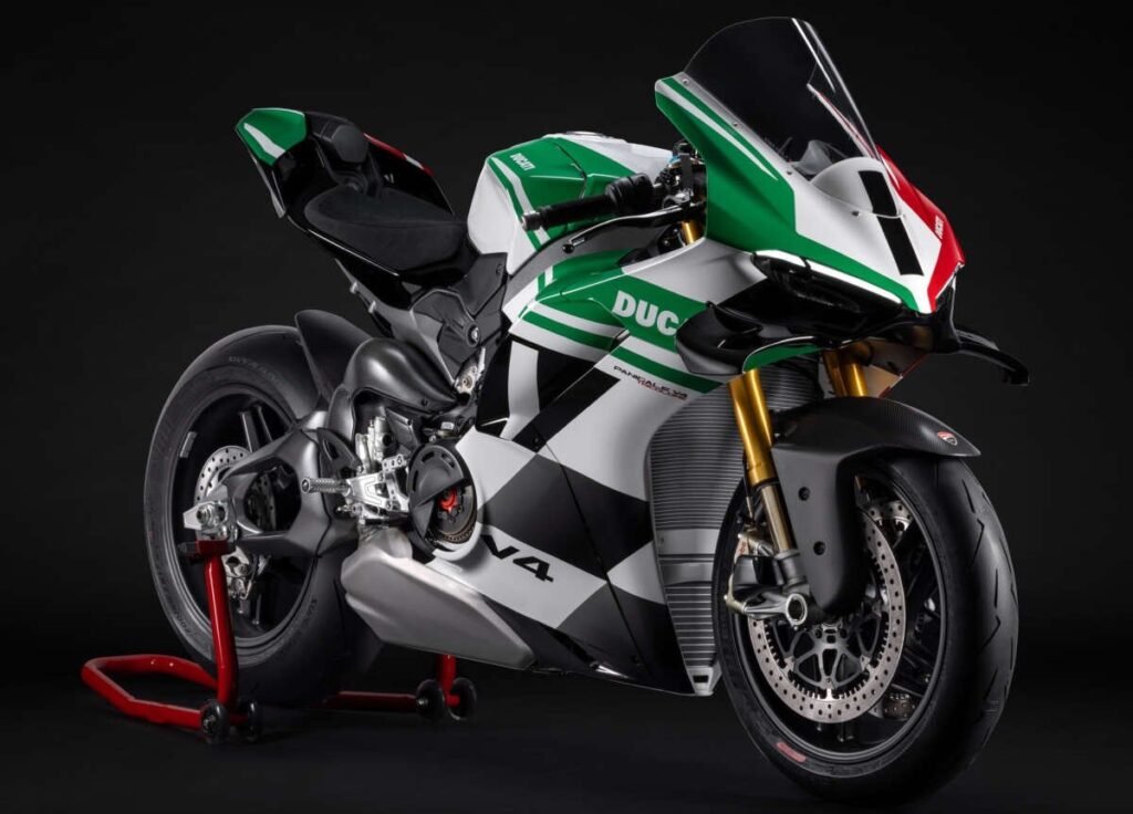 Prendendo spunto dalla settima generazione della Panigale, la V4 presentata durante il World Ducati Week lo scorso luglio, la Panigale V4 Tricolore combina i colori della bandiera italiana con il bianco e nero della bandiera a scacchi che adorna la parte inferiore della carenatura. Le targhe con il numero uno celebrano i successi agonistici di Ducati nel corso dei decenni.