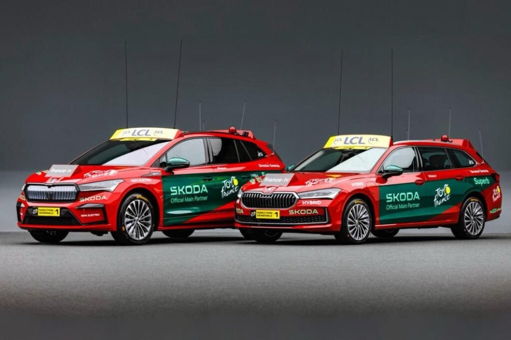 Il Tour de France 2025 partirà sabato 5 luglio da Lille, e con esso la famosa carovana di veicoli di ogni tipo, utilizzati per l’assistenza, la sicurezza e la pubblicità degli sponsor della competizione. Per il 22° anno consecutivo, Skoda è partner dell’evento. Il costruttore ceco del gruppo Volkswagen fornisce agli organizzatori ben 225 veicoli, una flotta composta esclusivamente da modelli elettrici e ibridi ricaricabili. Tra questi ci sono due auto speciali. Riconoscibili dal loro colore rosso, la Superb iV e l’Enyaq del direttore del Grande Boucle sono dotate di equipaggiamenti particolari.