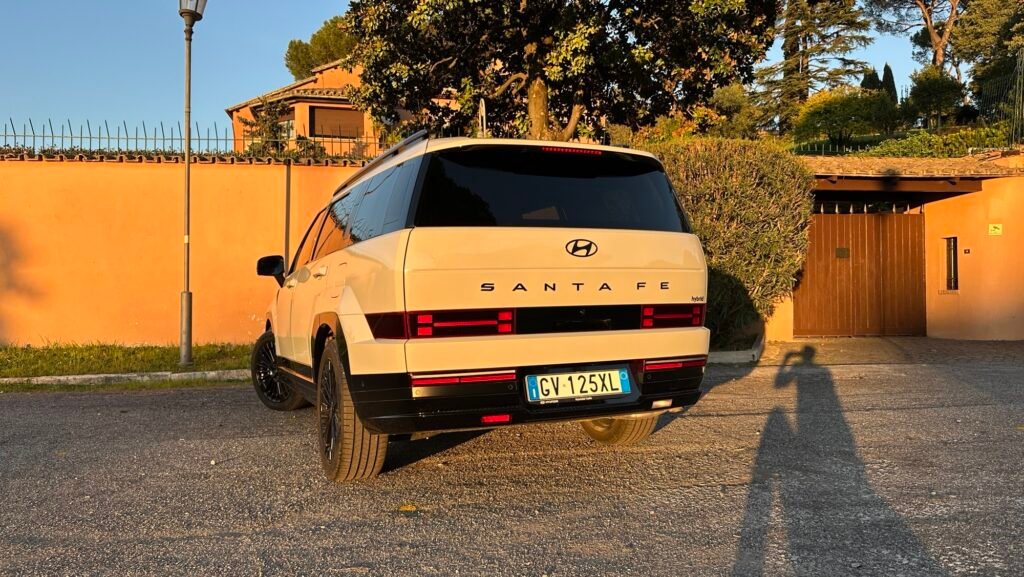 Quanta meravigliosa arroganza e muscolosità nella nuova serie di Santa Fe nata nel 2024: è uno dei maxi SUV che trovo irresistibili. E davvero, Vi assicuro, per la categoria SUV non nutro proprio una simpatia recondita o spassionata. Ma con il Videoservizio di Antonio sul Test Drive dello scorso Autunno (Per il Link clicca QUI) mi sono potuto avvicinare ad un modello dalle mille qualità, prima tra tutte lo “Status”, e per capire cosa davvero infonde questa “XXL” Made in Corea occorre sedere al posto di guida, che per inciso io ho trovato azzeccatissimo. Il design di questa Quinta generazione è “wild” ma contemporaneamente suadente e persino “animata” da contrasti formali e da particolari tecnici e stilistici davvero iconici. I fari anteriori e posteriori con motivo ad “H”, e tutto il resto della ricerca formale e – non fate quei risolini di scherno, chè vi vedo – persino aerodinamica (si, il Cx non si sputtana per effetto del muso modello “Grande Muraglia” e del cofano altissimo perché il resto del monovolume di abitacolo e coda è studiato e assemblato in modo da permettere all’aria di fluire. E meritoriamente Santa Fe 2024 ha vinto nella categoria “Product Design: Cars and Motorcycles”, per lo sviluppo formale attraverso cui pone al centro gli stili di vita dei consumatori: infatti con il suo concetto di design “Open for More”, la quinta generazione di SANTA FE offre uno spazio posteriore estremamente ampio e versatile, ai vertici della categoria, reso possibile dal passo allungato e dall’apertura allargata del portellone posteriore.