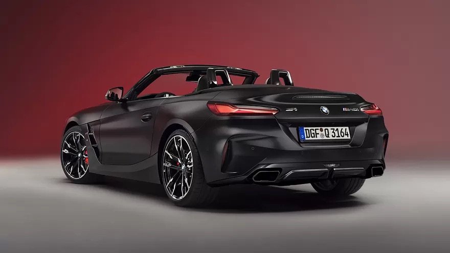 La BMW Z4 Final Edition presenta una serie di differenze nell’aspetto esteriore. Questo roadster ha una carrozzeria verniciata nell’esclusivo colore nero opaco Frozen (sono disponibili anche altre varianti senza sovrapprezzo) e completata da decorazioni del pacchetto Shadowline M, che è di serie nella versione speciale. Oltre ai cerchi bicolore, si possono notare le pinze dei freni rosso brillante lucido.