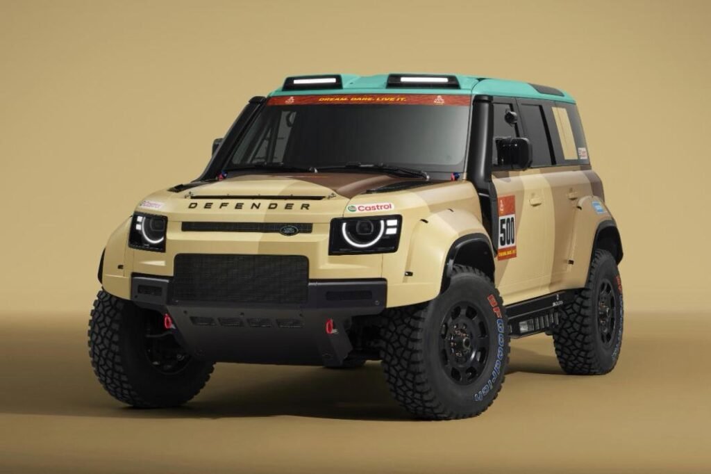 Un filtro antiparticolato è stato installato nelle prese d’aria per impedire l’ingresso della sabbia. Sul tetto sono stati aggiunti fari supplementari, mentre il veicolo dispone di un impianto frenante specifico da rally con dischi ventilati e pinze a sei pistoncini all’anteriore (quattro al posteriore). L’elettronica del Defender Dakar D7X‑R è gestita da un’unica centralina dedicata al motorsport per ottimizzare l’affidabilità in condizioni estreme, con tarature “racing” sviluppate internamente.