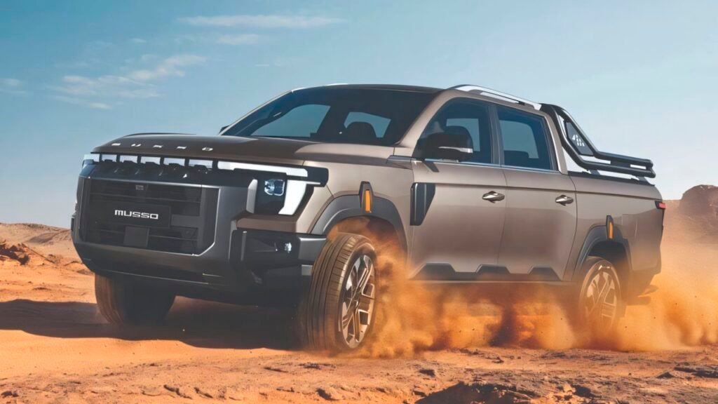 KGM non ha mostrato la parte posteriore, ma si sa che anche questo nuovo Musso segue la stessa tendenza di altri concorrenti e punta sulla configurazione a doppia cabina con un grande cassone di carico, basata sulla classica struttura del telaio a scala, tipica dei fuoristrada più robusti sul mercato come il lussuoso Land Cruiser che rimane fedele alle sue origini, e che non solo gli consentono di avere una grande capacità dinamica fuori dall’asfalto, ma anche di carico.