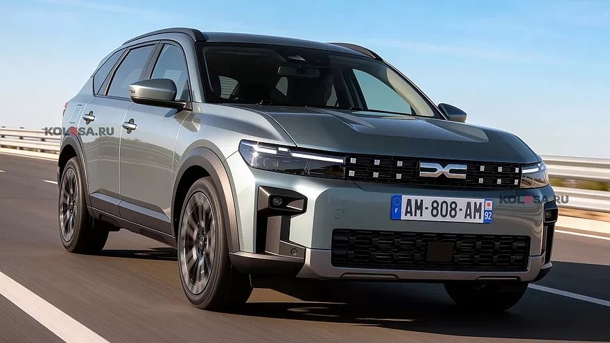 Secondo i rendering, questo crossover familiare avrà un design esterno in linea con l’attuale stile del marchio Dacia. La novità potrebbe avere un cofano lungo e inclinato con stampature, ottiche di forma semplice con strisce di luci di marcia, e i fari sono visivamente collegati tra loro tramite una griglia del radiatore con “pixel” cromati e il logo al centro.