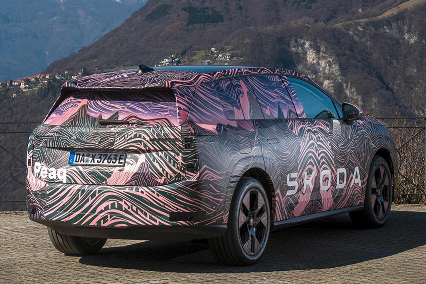 Le strisce di mascheratura del prototipo presentato da Skoda nascondono una firma luminosa a T ai quattro angoli e una striscia luminosa a puntini tra i fari anteriori. L’abitacolo dell’auto resta da scoprire. Dovrebbe differenziarsi da quello del concept più di quanto non faccia il design esterno. È prevedibile una strumentazione a due schermi, ma la console centrale e il volante dovrebbero essere dotati di una serie di pulsanti, come avviene in altre novità del gruppo Volkswagen, che punta a migliorare l’ergonomia dei propri veicoli.