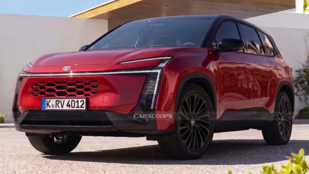 Dal punto di vista estetico, i rendering attingono ampiamente dal linguaggio stilistico introdotto dalla Toyota Corolla Concept alla fine del 2025. I LED in stile “testa di martello”, con le loro estensioni verticali nel paraurti, si trovano sopra una griglia a nido d’ape rifinita in tinta con la carrozzeria, non molto lontanana dall’aspetto della Yaris Cross recentemente rinnovata.